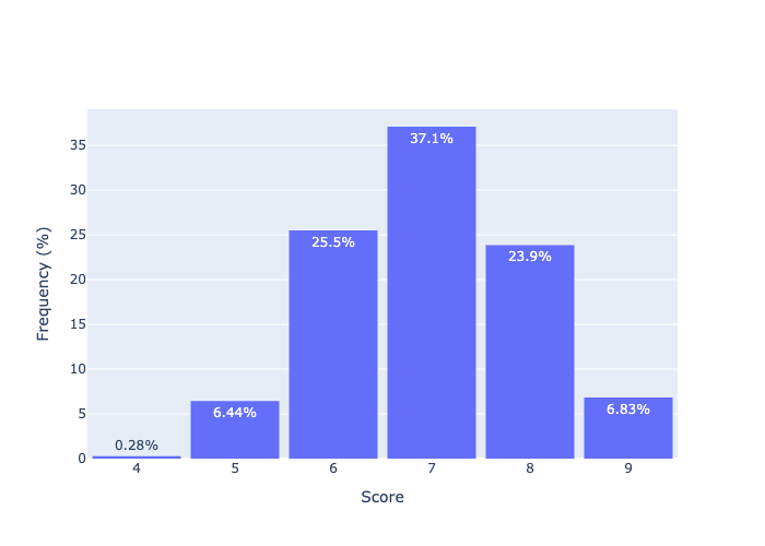 I then tested what the distribution of scores are using this (by playing the game 10000 times).
